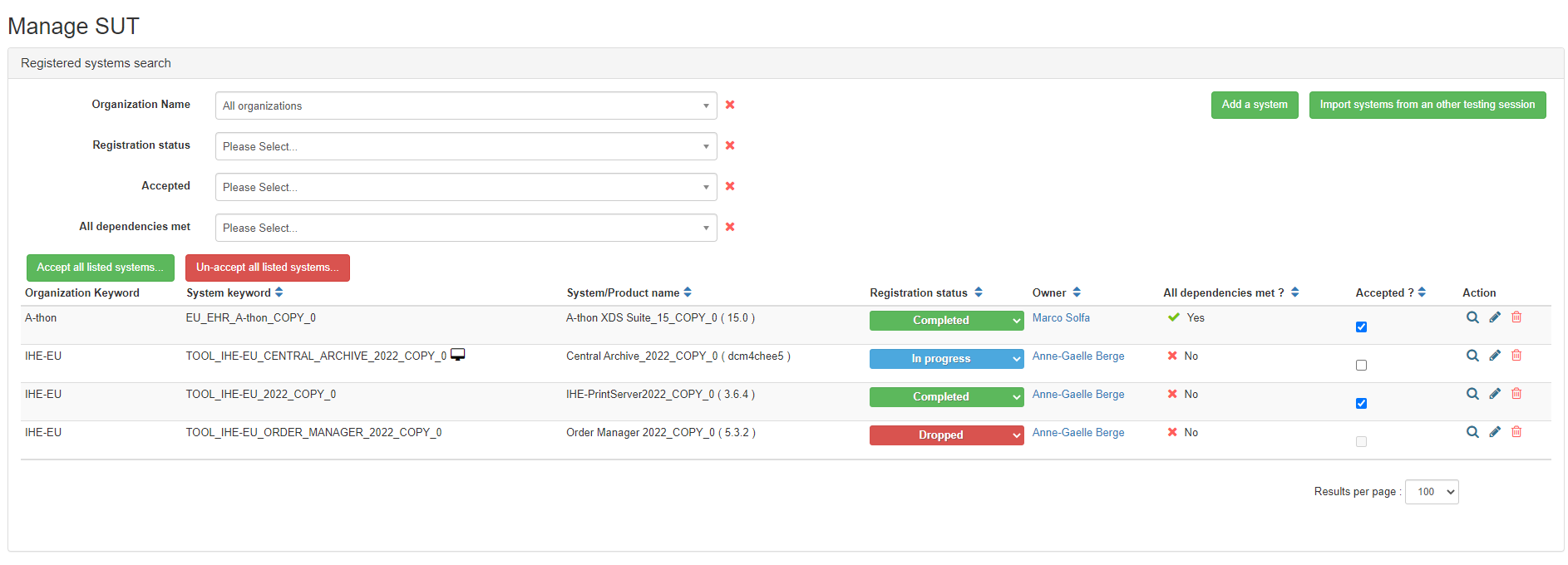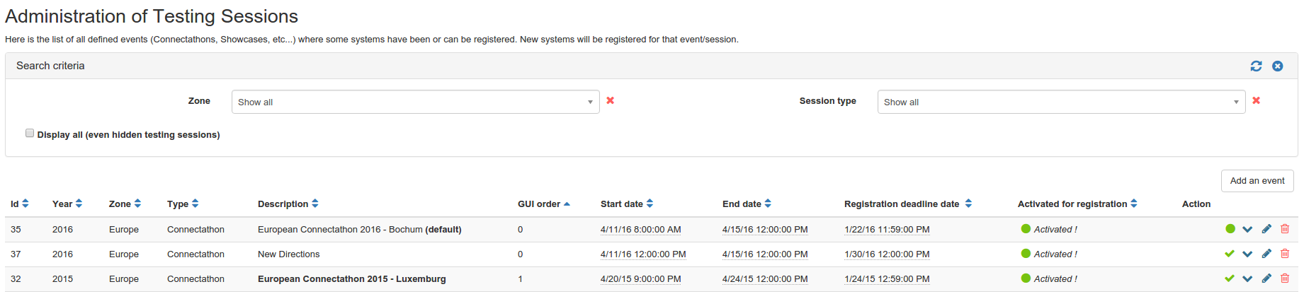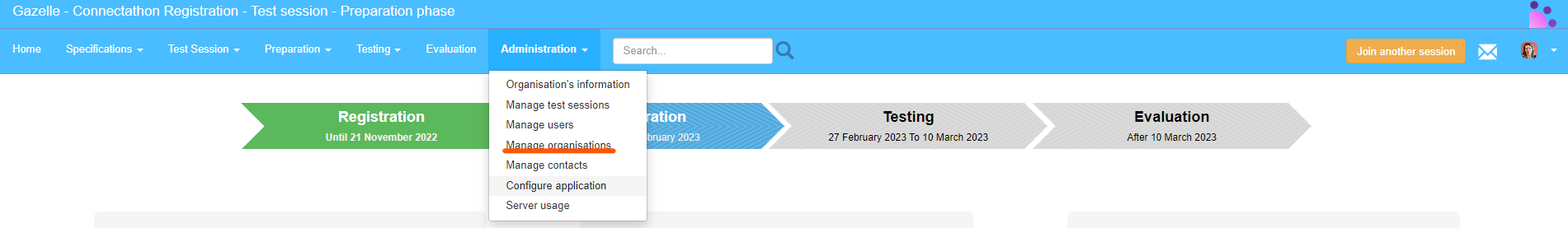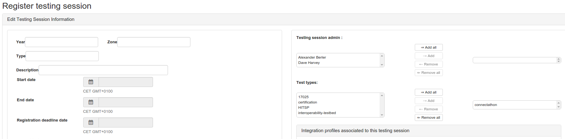 2. Test management (for a Connectathon): used when gazelle act as manager of CAT testing sessions