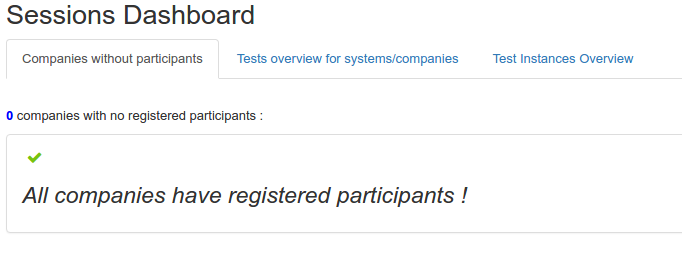 This panel describes the list of systems registred in the testing session, and for each system we provide : the organization, the status of the system, the number of tests executed by the system during the CAT and the details about the results of these tests.