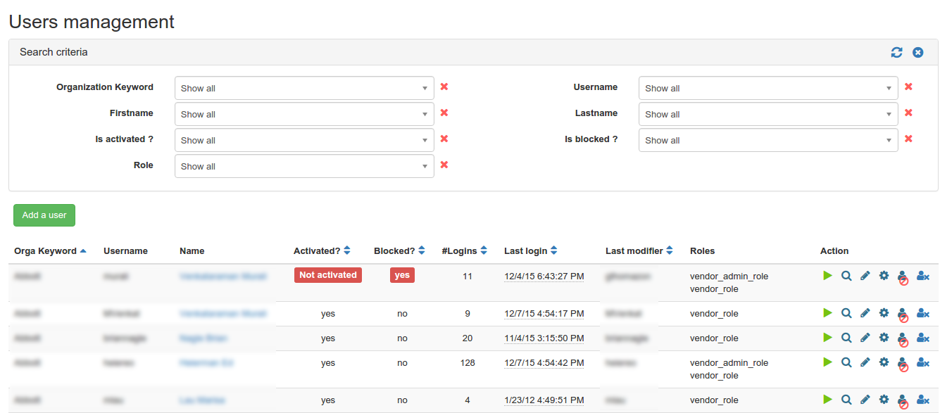 This page is divided into two parts; first you can filter the results and below the results (restrained to the filter criteria) are displayed.