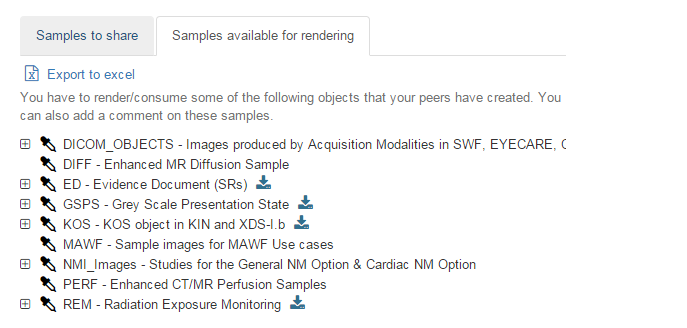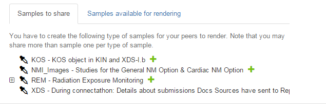 Module for sharing samples. This component allows registered system to share and find samples. Some system need to provide samples, some need to render them. The component allows the participants to easily find the samples relevant for their systems. The sample sharing module is linked to External Validation Services for checking the conformity of the shared samples. The component makes also use of internal validation services