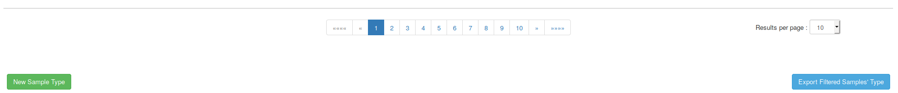 Once you accessed the Samples Administration page, you will have the list of all Samples Type for your instance displayed. Those Samples Type can be filtered base on their status. To export them simply click the Export Filtered Samples’ Type button. This will create the XML file corresponding to the filtered Samples’ Type and automatically downloads it.