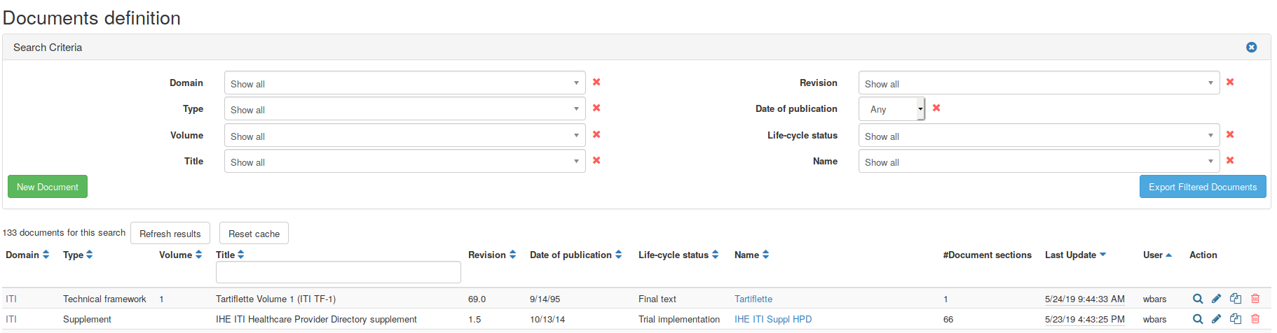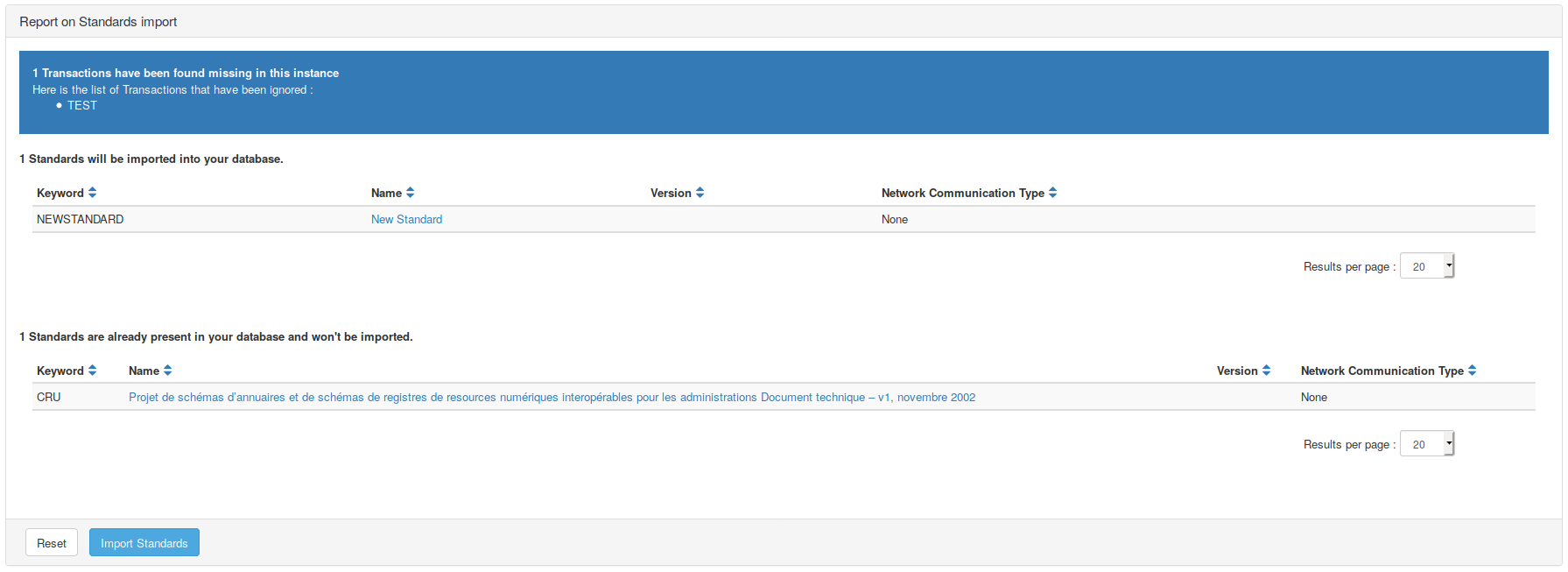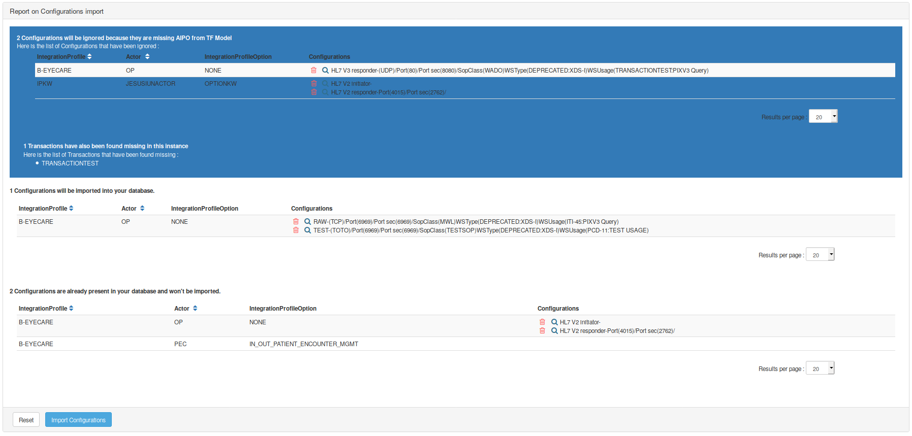 If the Review Changes before saving option is activated, simply click the Import Samples’ Type button on the bottom of the report to validate the changes and import them into the Gazelle Test Management instance. If something is not ok with the document, click the Reset button. Changes will not be made on the tools data and you will be able to upload another document.