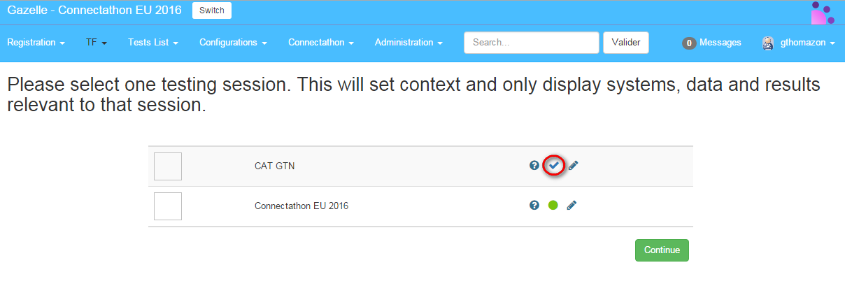 When a user logs in to Gazelle, the user is viewing information for a single testing session. Gazelle always “remembers” the last testing session a user was working in. A user may switch between testing sessions. How-to instructions are here.