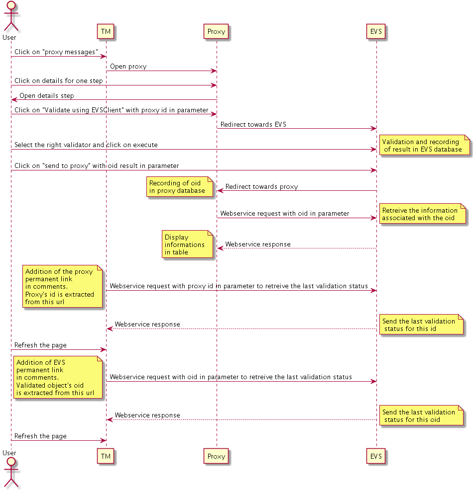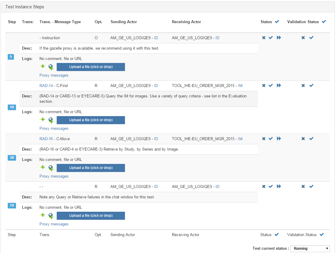 Interactions with the Proxy component. Control of the proxy, instruct the proxy of the interfaces to open and close for testing purposes. Allow participants to link test instance steps to corresponding messages captured by the proxy.